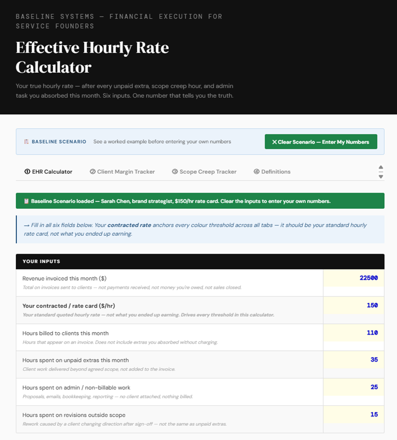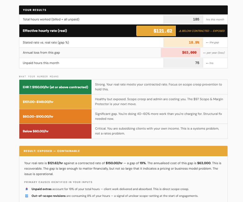 Most service founders believe their rate is what they charge. This shows what they actually kept — and what's causing the gap.